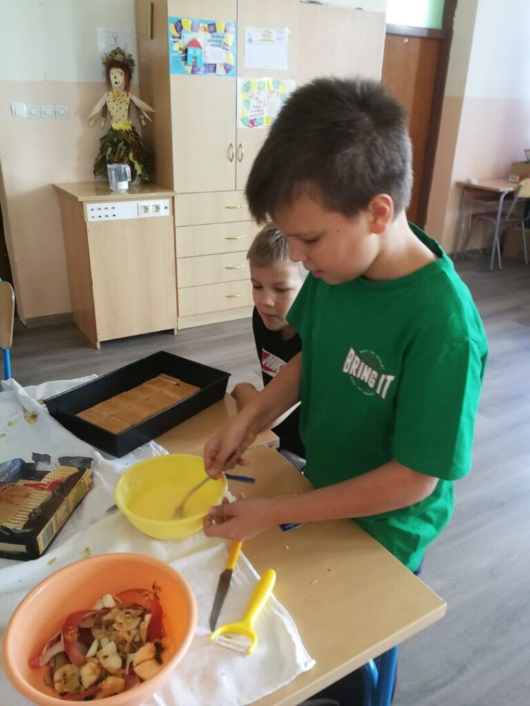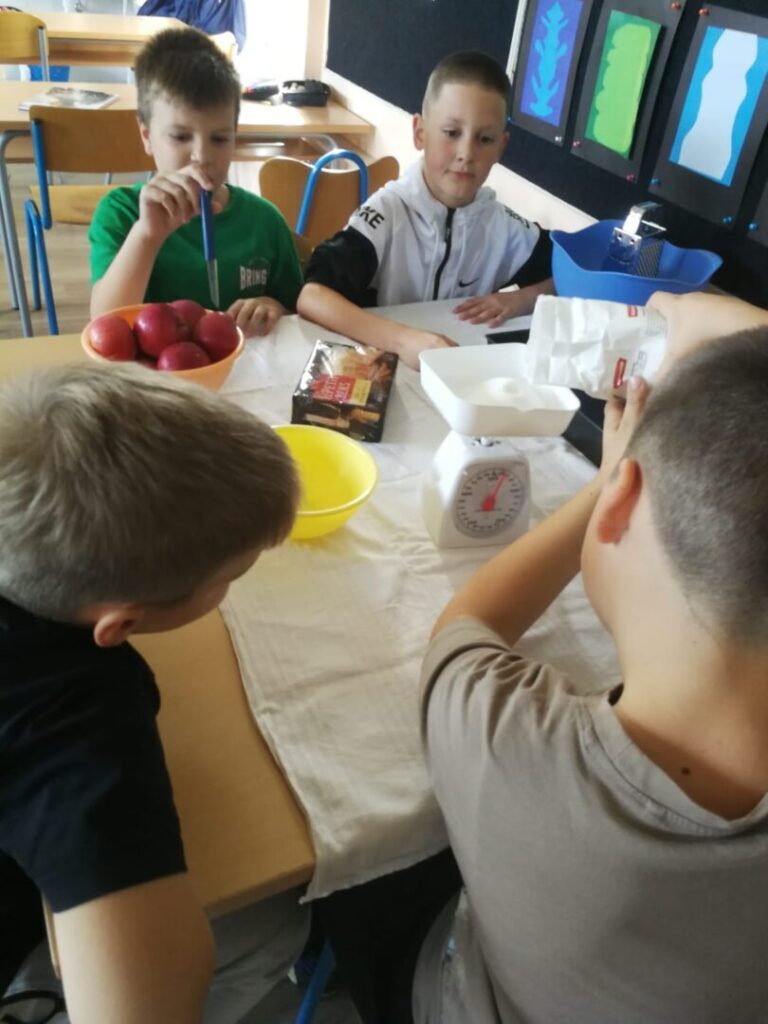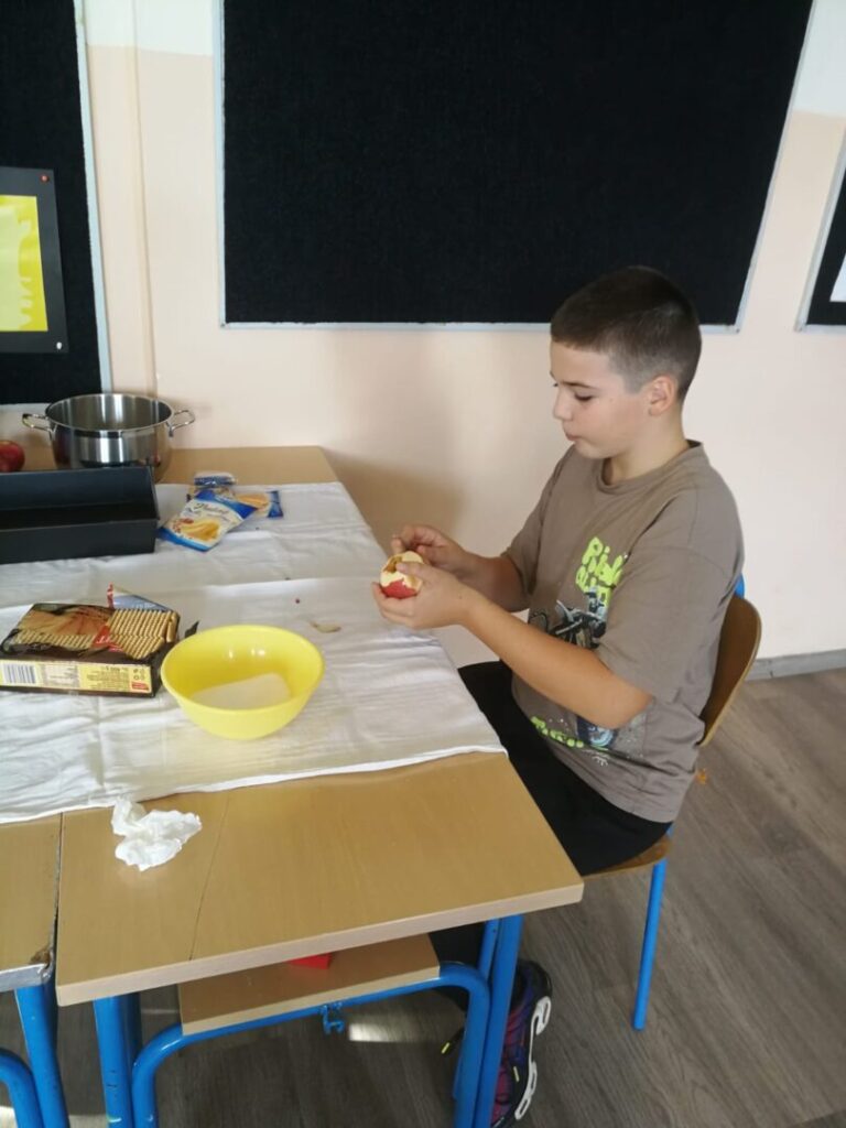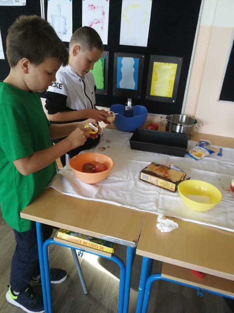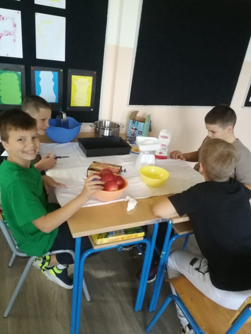 Učenici četvrtog razreda, zajedno sa svojom učiteljicom, dan jabuka obilježili su spremanjem ukusnog kolača. Bravo dečki!