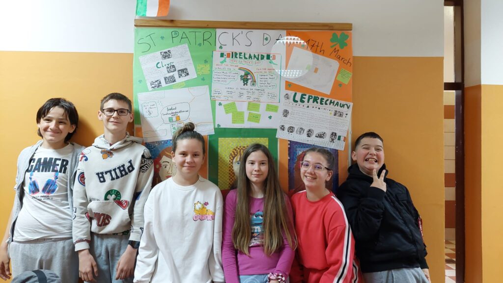 Učenici petog razreda, zajedno sa svojom učiteljicom iz engleskog jezika Ivom, izradili su plakat o sv. Patriku, pritom ponešto naučili i dobro se zabavili!