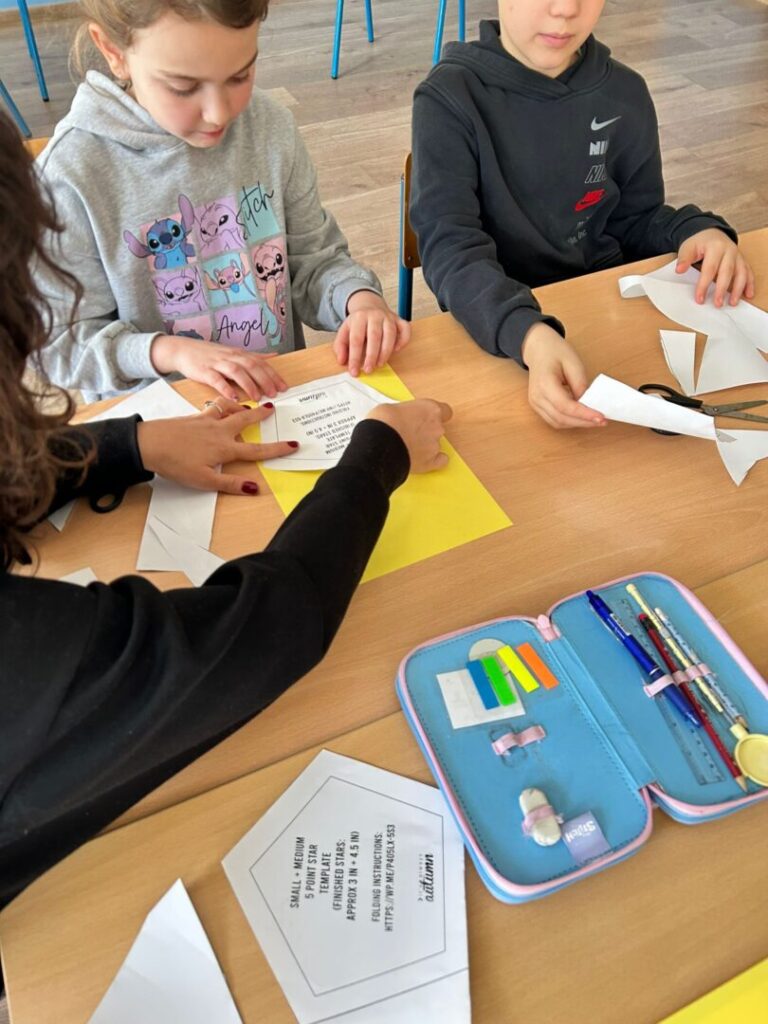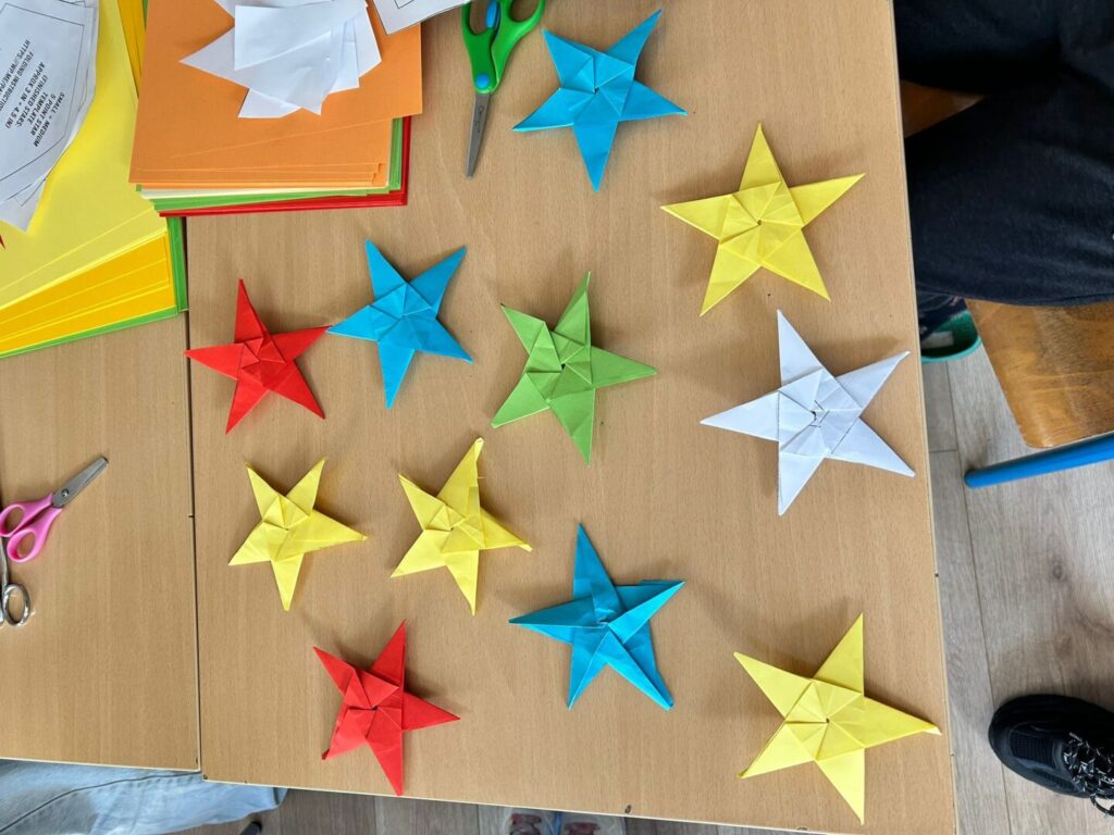 Dana 10.12., ravnateljica gradske knjižnice u Vodicama, posjetila je učenike 3. i 4. razreda. Pričala im je priču o Grinchu koji je ukrao Božić, a nakon toga je uslijedio razgovor s učenicima o tome što za njih znači Božić i imaju li neke posebne želje koje ne uključuju materijalne stvari. Zatim je održala radionicu izrade origami zvijezde od papira ( ako netko želi pokušati kod kuće – ne samo zvijezdu nego i razne druge stvari, na poveznici se nalazi video s uputama – URL: Fold an Origami Star {in 5 simple steps} – It’s Always Autumn ).
